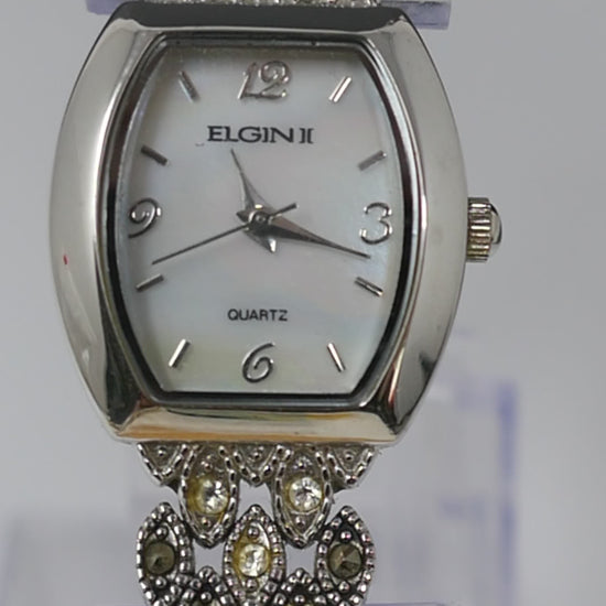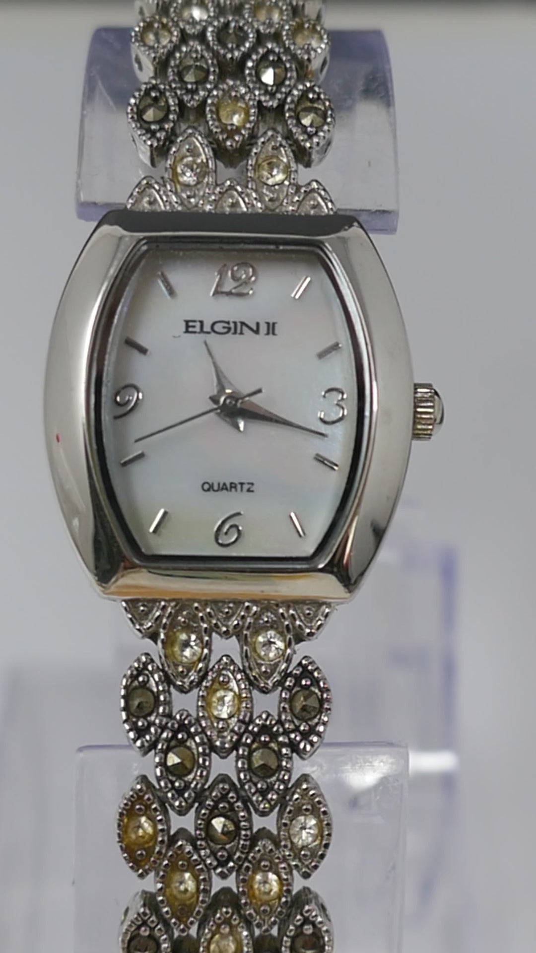 Elgin II Crystal Marcasite Silver Tone Ladies Quartz Watch NEW BATTERY