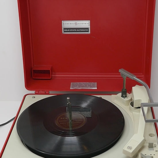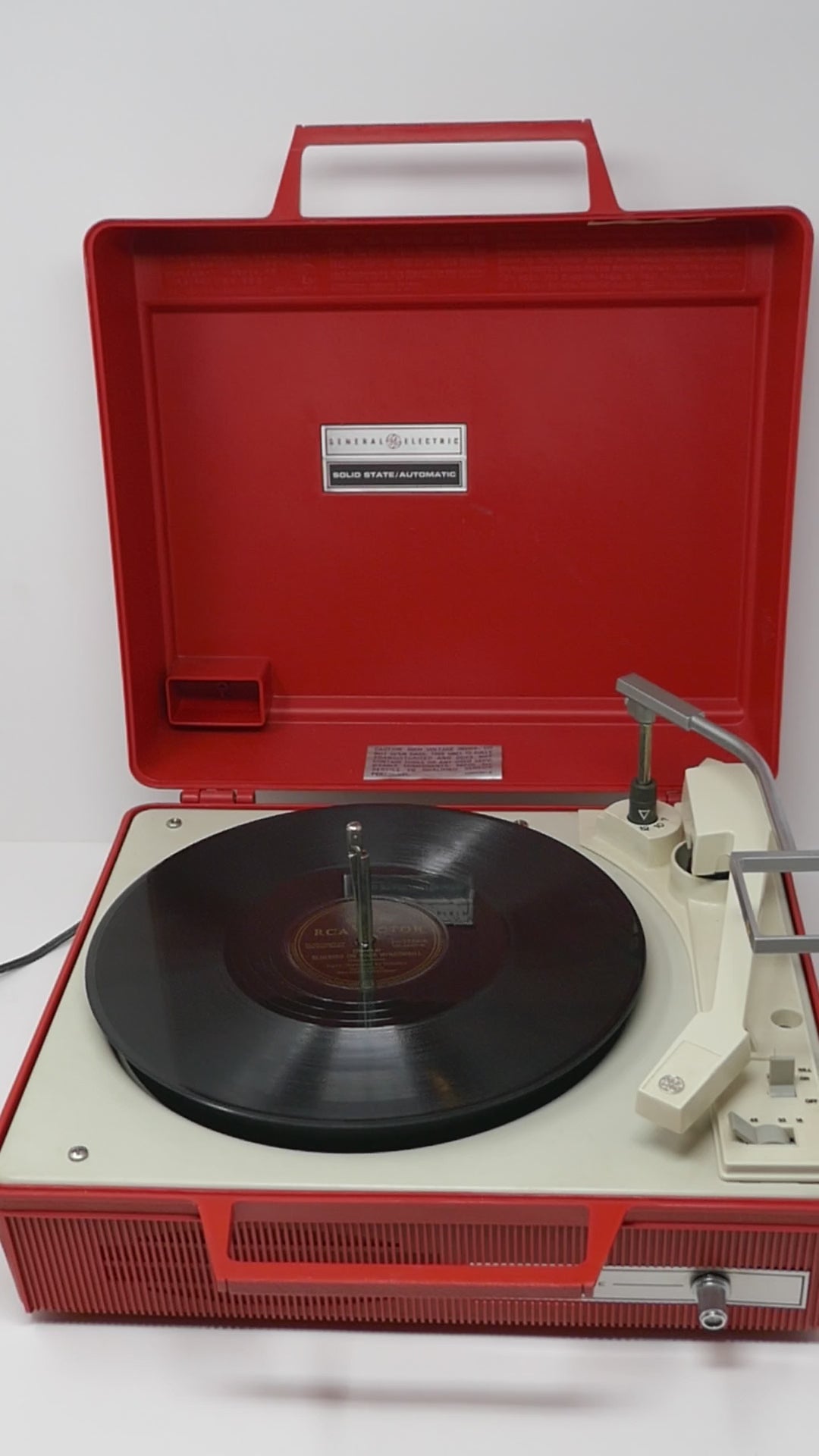 The General Electric Solid State Automatic Record Player is a vintage audio piece that is sure to appeal to collectors of vintage electronics. This has been tested and works! The spindle adapter is included but the little clip or plastic recess that holds the adapter is broken. With its solid-state technology, this unit offers a sleek and stylish design that is both functional and retro. Perfect for music enthusiasts looking to add a classic touch to their collection, this record player is a rare and valuable piece that is sure to impress.